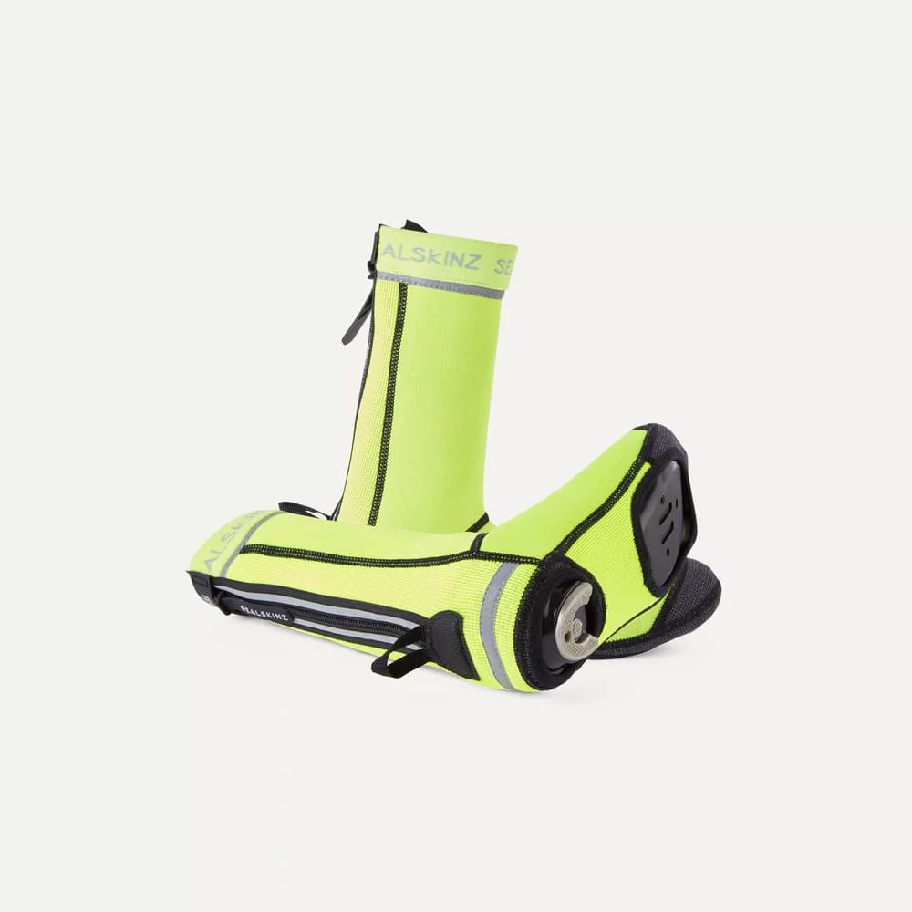 A water-repellent, insulative cycling overshoe. Lightweight and streamlined, the Hempton is made for cleated cycling footwear. Reflective detailing on cuff, back of overshoe and heel offers increased visibility at night. A Kevlar® heel and toe is especially durable, handling the wear and tear of clipping into peddles and repeated contact with crank arms. A rear zipper with pull loop increases practicality, while a closed sole prevents water splashing up from below. The Hempton is the ultimate companion for cleated cycling footwear.