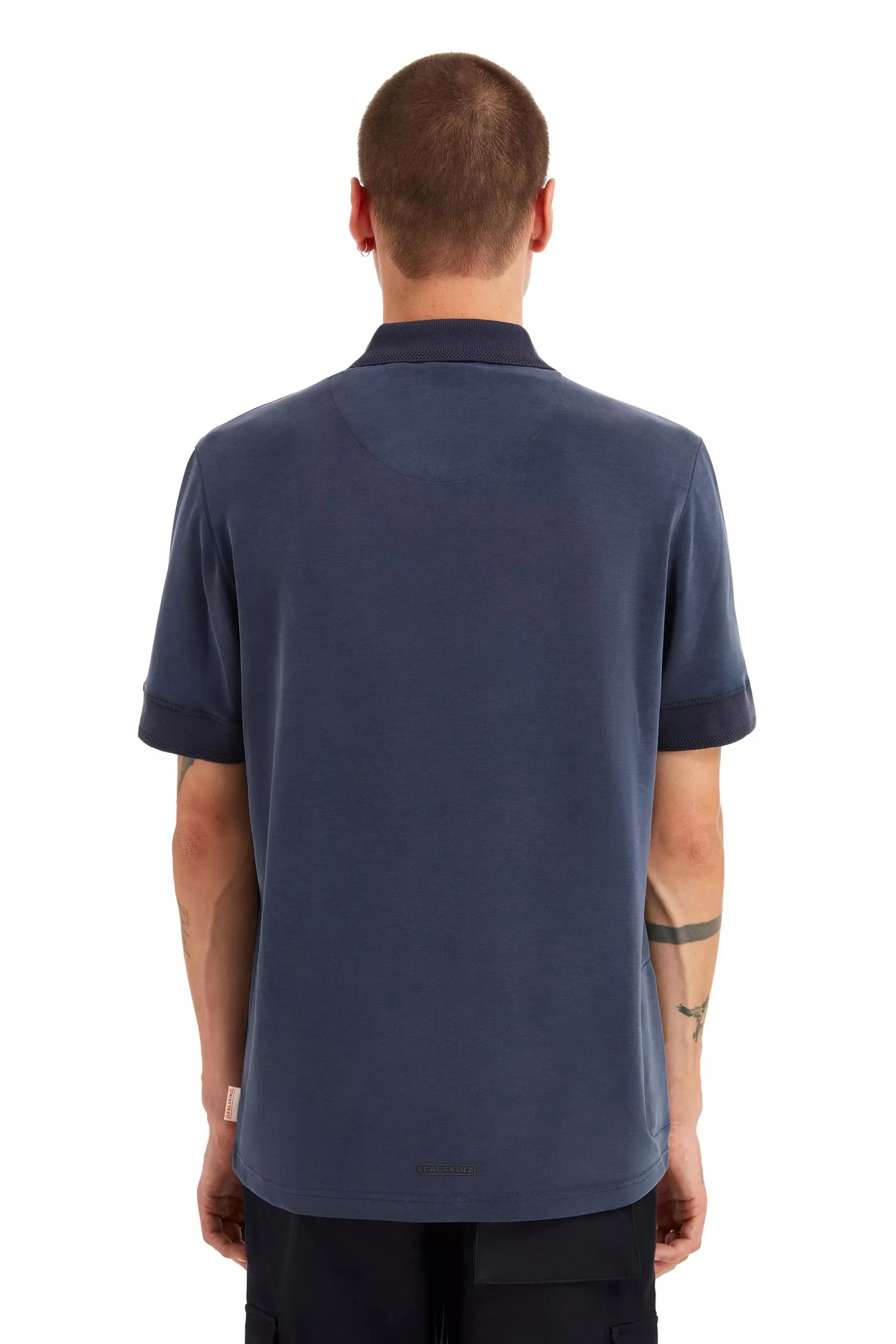 Buttoned Polo Shirt. Fabric blend is soft-touch and quick drying. Hidden zipped seam pocket for miscellanies. A classic men’s polo shirt for spring and summer months. Recycled stretch polyester is planet friendly.